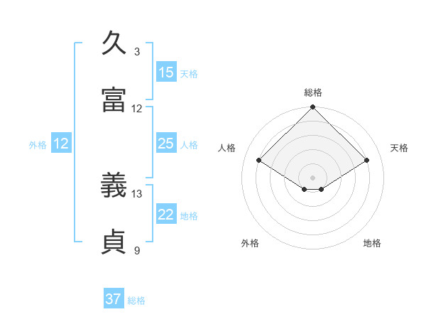 久富 義貞さんの総格は37画の5点!