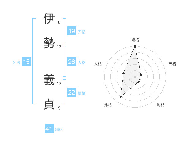伊勢 義貞さんの総格は41画の5点!