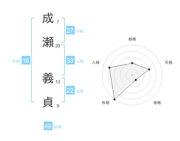成瀬 義貞さんを姓名の画数から五運を鑑定