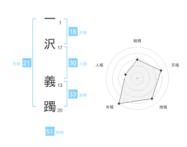 一沢 義躅さんを姓名の画数から五運を鑑定