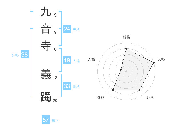 九音寺 義躅さんを姓名の画数から五運を鑑定