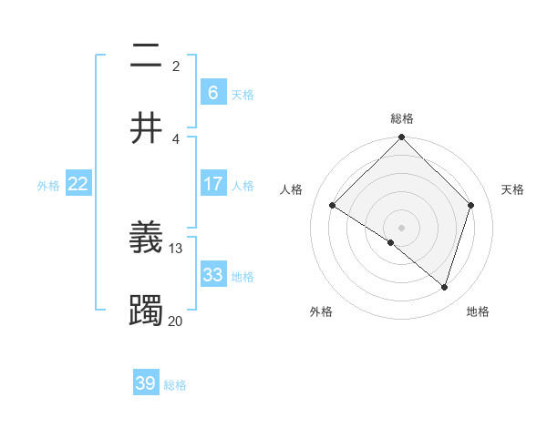 二井 義躅さんの総格は39画の5点!