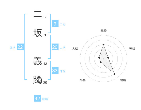 二坂 義躅さんの地格は33画の4点!