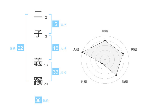 二子 義躅さんの総格は38画の4点!