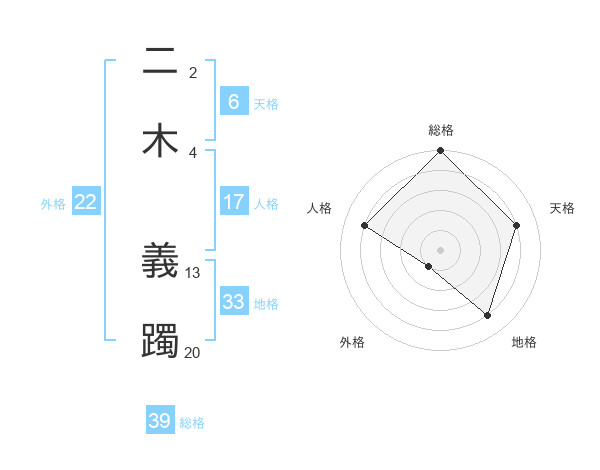 二木 義躅さんの総格は39画の5点!