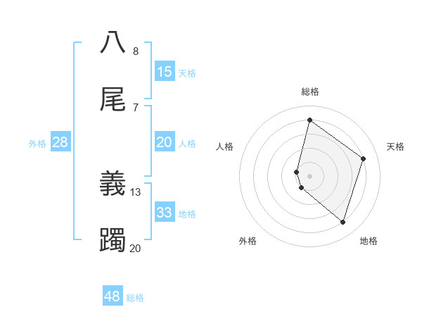 八尾 義躅さんを姓名の画数から五運を鑑定