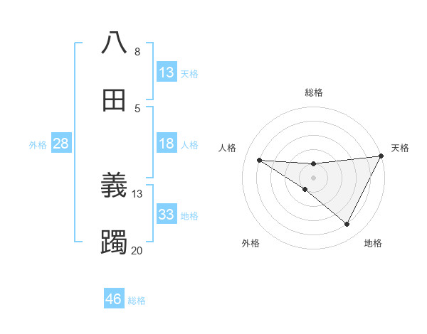 八田 義躅さんの天格は13画の5点!