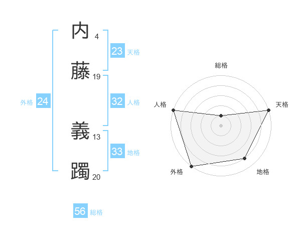 内藤 義躅さんの総格は56画の1点!