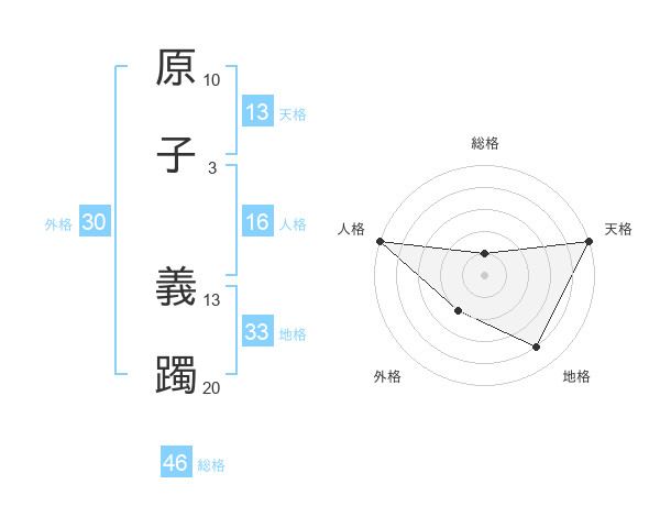 原子 義躅さんの総格は46画の1点!