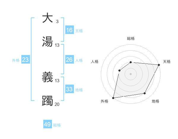 大湯 義躅さんの総格は49画の2点!