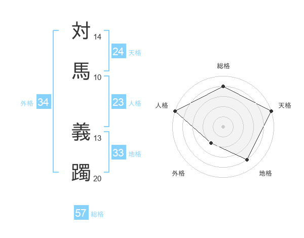 対馬 義躅さんの総格は57画の4点!