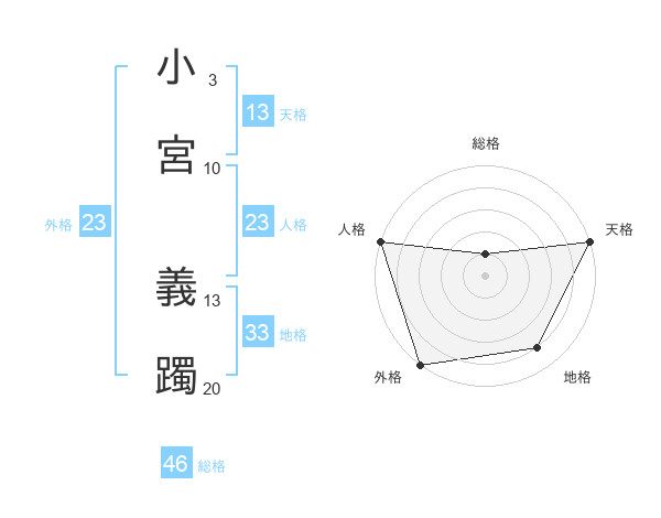 小宮 義躅さんの天格は13画の5点!
