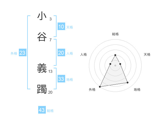 小谷 義躅さんを姓名の画数から五運を鑑定