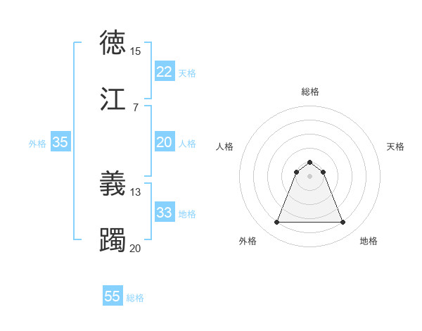 徳江 義躅さんの天格は22画の1点!