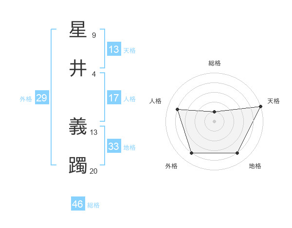 星井 義躅さんの総格は46画の1点!