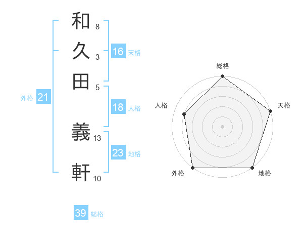 和久田 義軒さんを姓名の画数から五運を鑑定