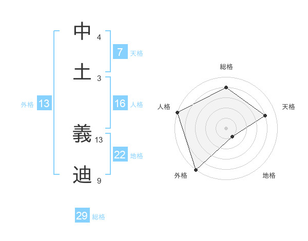 中土 義迪さんの外格は13画の5点!