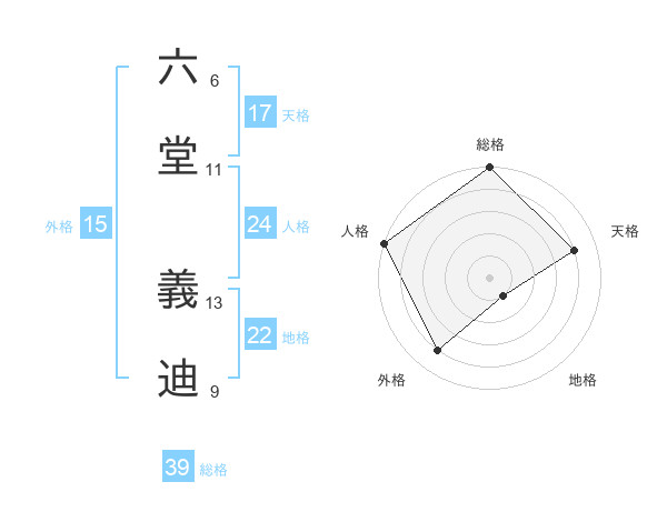 六堂 義迪さんを姓名の画数から五運を鑑定