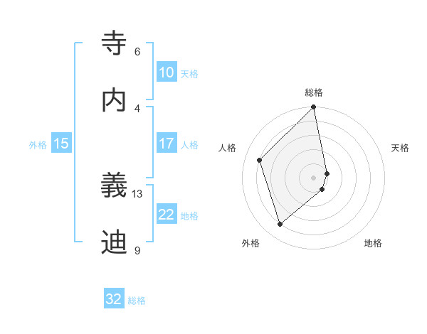 寺内 義迪さんの総格は32画の5点!