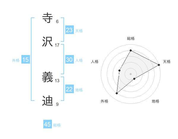 寺沢 義迪さんを姓名の画数から五運を鑑定