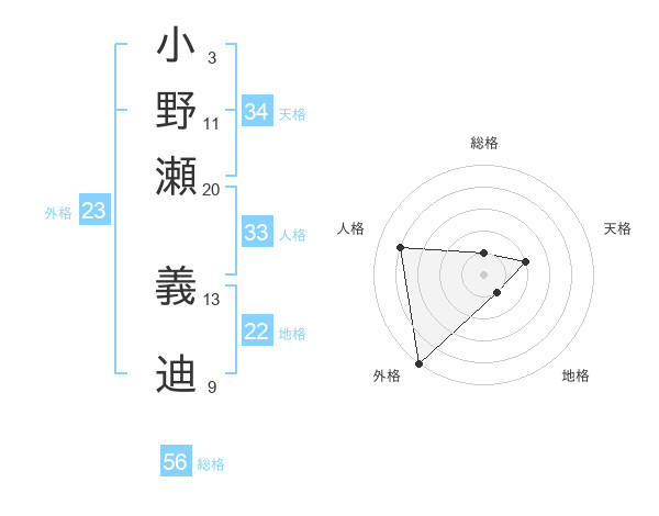 小野瀬 義迪さんを姓名の画数から五運を鑑定
