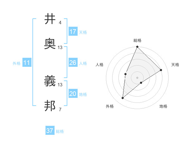 井奥 義邦さんの総格は37画の5点!