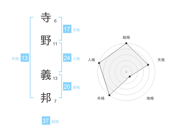 寺野 義邦さんを姓名の画数から五運を鑑定