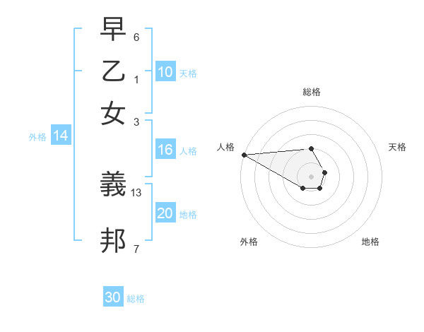 早乙女 義邦さんを姓名の画数から五運を鑑定