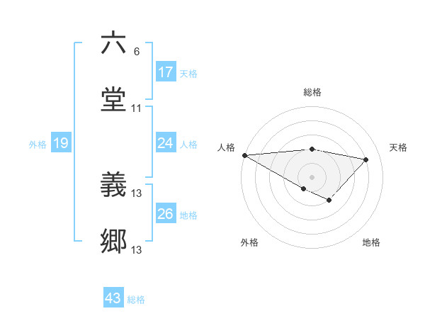 六堂 義郷さんを姓名の画数から五運を鑑定