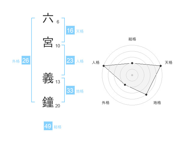 六宮 義鐘さんを姓名の画数から五運を鑑定