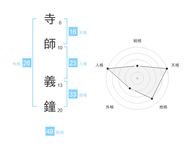 寺師 義鐘さんの総格は49画の2点!
