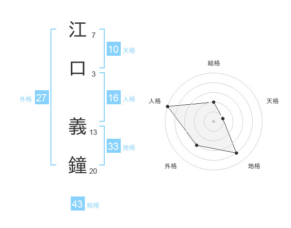 江口 義鐘さんの総格は43画の2点!