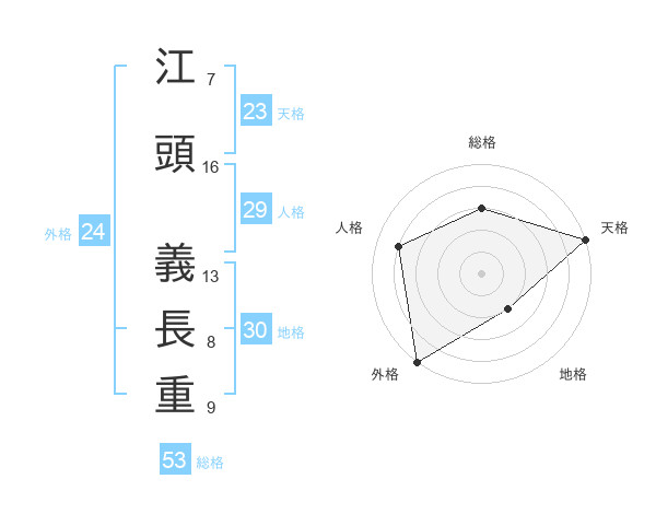 江頭 義長重さんを姓名の画数から五運を鑑定
