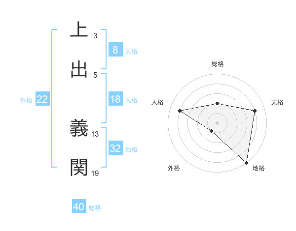 上出 義関さんの天格は8画の4点!