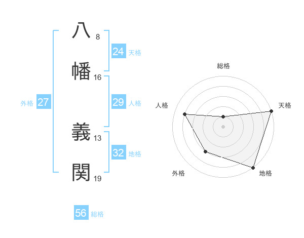 八幡 義関さんの天格は24画の5点!