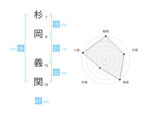 杉岡 義関さんの総格は47画の5点!
