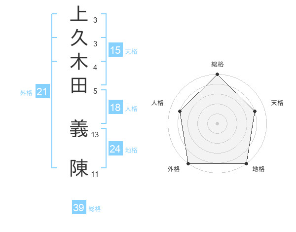 上久木田 義陳さんの総格は39画の5点!