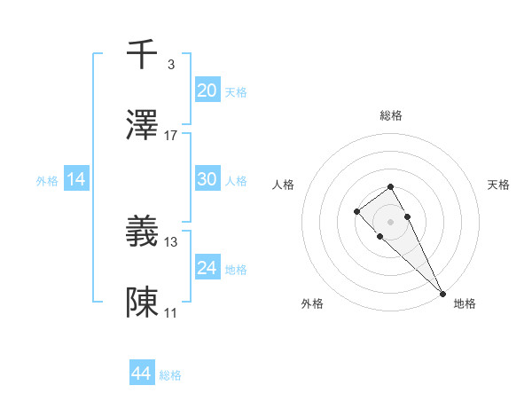 千澤 義陳さんの総格は44画の2点!