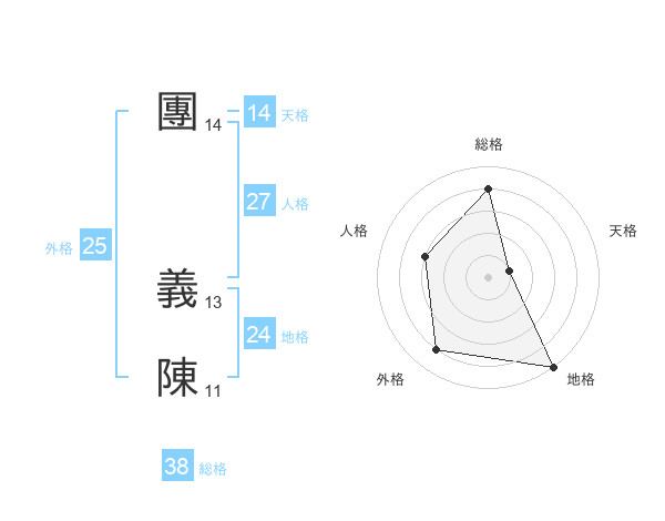 團 義陳さんの総格は38画の4点!