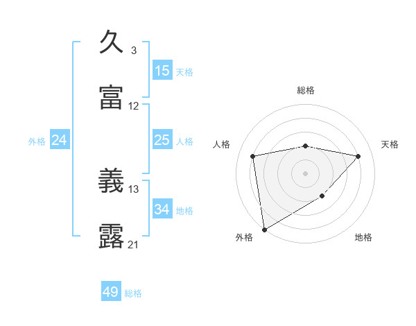 久富 義露さんの総格は49画の2点!