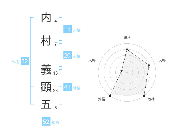 内村 義顕五さんを姓名の画数から五運を鑑定