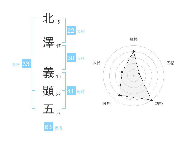 北澤 義顕五さんを姓名の画数から五運を鑑定