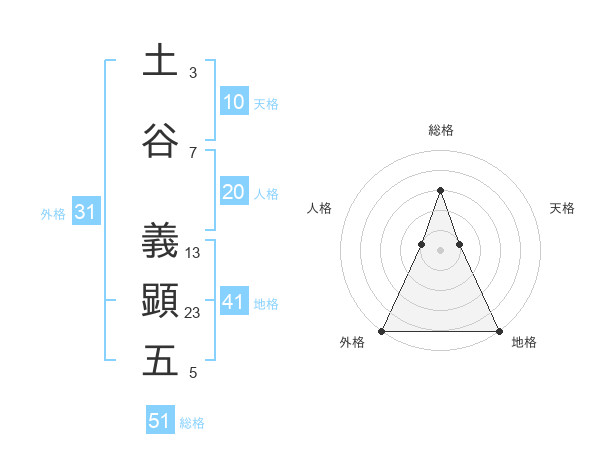 土谷 義顕五さんの総格は51画の3点!