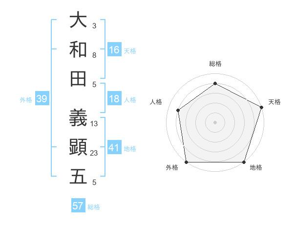 大和田 義顕五さんを姓名の画数から五運を鑑定