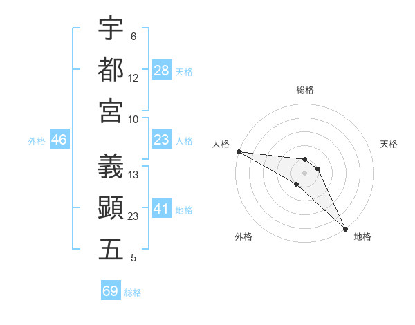 宇都宮 義顕五さんを姓名の画数から五運を鑑定
