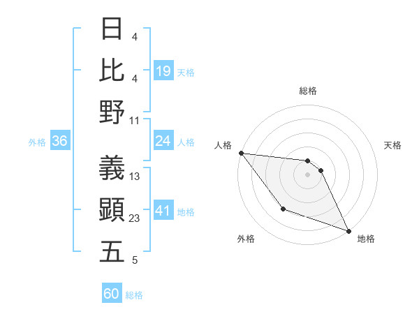 日比野 義顕五さんを姓名の画数から五運を鑑定
