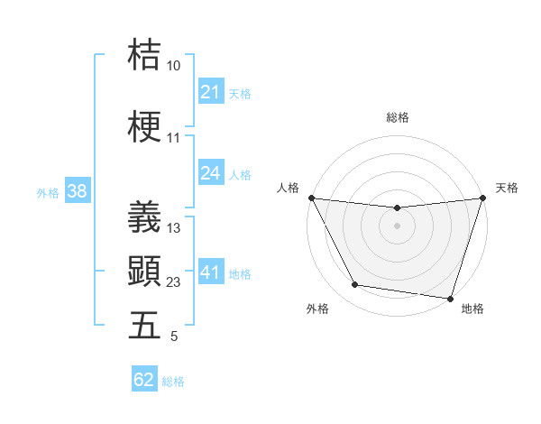 桔梗 義顕五さんを姓名の画数から五運を鑑定