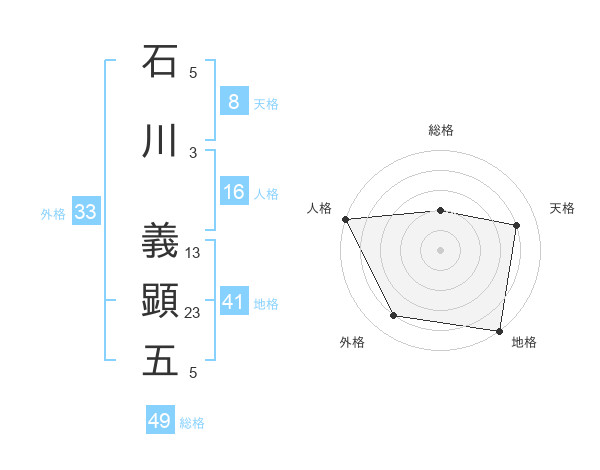 石川 義顕五さんを姓名の画数から五運を鑑定