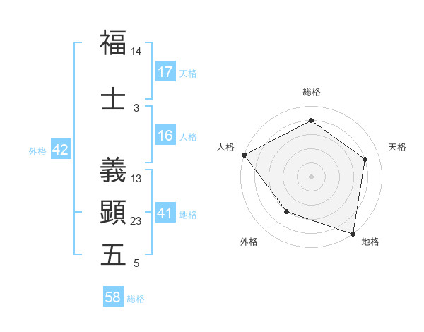 福士 義顕五さんを姓名の画数から五運を鑑定