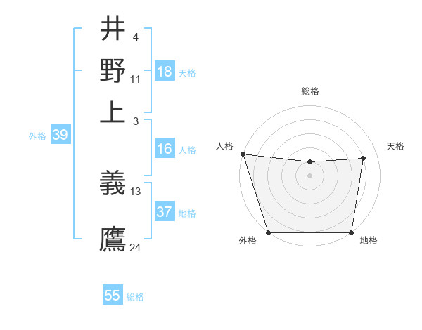 井野上 義鷹さんを姓名の画数から五運を鑑定